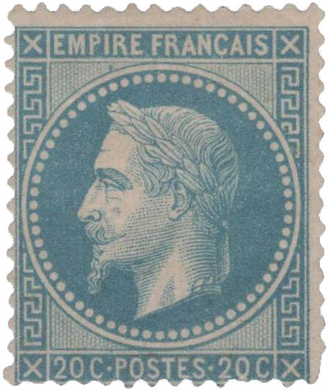 | Commentaire | Napoléon III - Empire lauré. Type II Le 20 centimes bleu type II, émis en août 1868, appartient à la grande série Napoléon III lauré, gravée par Désiré-Albert Barre. Comme pour le type I, il sert à l’affranchissement de la lettre simple de bureau à bureau, au moment où le trafic postal atteint un niveau historique. Cette forte demande entraîne une impression continue, faisant de cette valeur l’une des plus courantes du Second Empire. Le type II se distingue du type I par la présence de gros points situés entre “POSTE” et “20”, marque typographique essentielle permettant l’identification du poinçon retouché ou refait. Ces différences, minimes mais nettes, découlent de l’évolution du matériel d’impression, régulièrement remis en état pour suivre les énormes cadences de production. Imprimé en typographie et dentelé en ligne, ce timbre illustre la phase tardive du régime impérial, juste avant la chute de 1870. Sa diffusion massive en fait un témoin postal omniprésent dans les correspondances de la fin de l’Empire lauré. |