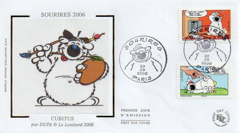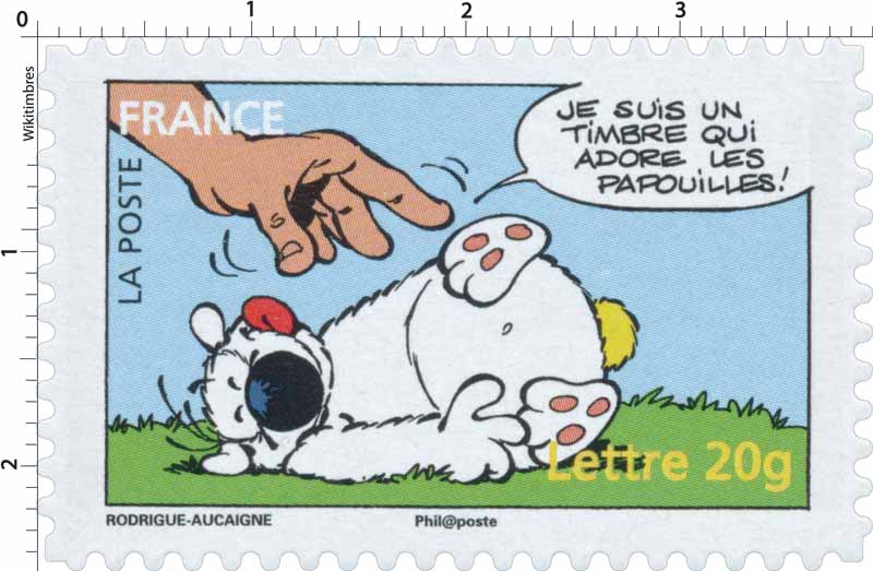 | Description | Carnet sourires : Le chien Cubitus, créé par Luc Dupanloup dit Dupa (1945 -2000), scénariste et dessinateur de bandes dessinées belge. Je suis un timbre qui adore les papouilles ! |
