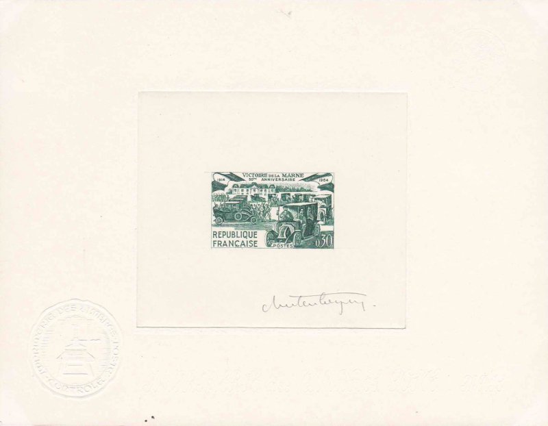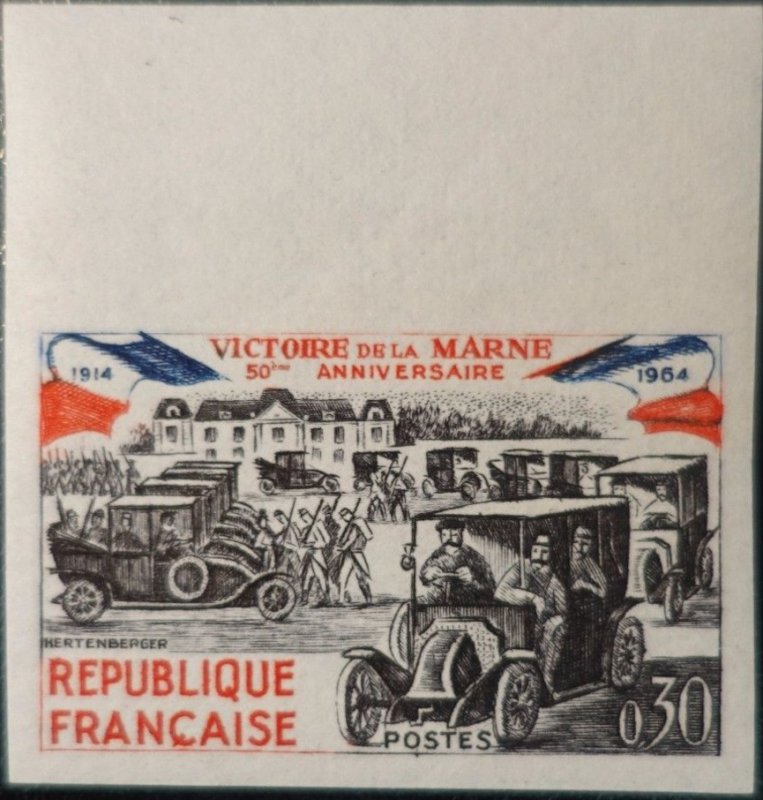 | Commentaire | Voir la vidéo "Histoires de timbres" La bataille de la Marne : le jour où Paris a retenu son souffle Il y a des jours où l'Histoire bascule sans prévenir. Septembre 1914, la France joue sa peau : les troupes allemandes foncent droit vers Paris, à une vitesse qui file le vertige. On parle même d'évacuer le gouvernement... Ambiance pas très zen, tu l'imagines. Et pourtant, alors que tout semble foutu, un coup de théâtre se produit. Le général Joffre, surnommé "le Père la Victoire" (un gars pas très causant mais sacrément tenace), organise une contre-offensive sur la Marne. Là, c’est du lourd : grâce à une manœuvre audacieuse, appuyée par des renforts improvisés – dont les fameux taxis de la Marne (oui oui, de vrais taxis parisiens, réquisitionnés à la hâte pour transporter des soldats au front !) – l'armée française parvient à stopper net l'avance allemande. Tiens, détail croustillant : le 7 septembre 1914, près de 600 taxis embarquent 6 000 hommes direction Nanteuil-le-Haudouin. Une scène surréaliste, franchement : des soldats entassés avec leurs sacs sur des bagnoles d'époque... un peu comme une manif improvisée, mais pour sauver le pays. La victoire de la Marne ne signe pas la fin de la guerre (oh que non), mais elle empêche l’effondrement de la France. Et quelque part, elle casse le mythe d'une guerre rapide. À partir de là, on s'enterre, on piétine, on souffre – quatre longues années durant. Aujourd'hui, on pourrait dire que cette bataille, discrète pour certains, a été l'un des premiers "grands miracles" du XXᵉ siècle. Enfin, miracle... disons un mélange de bravoure, d'improvisation, et peut-être d’un chouïa de chance. WikiTimbres