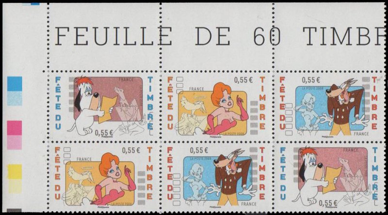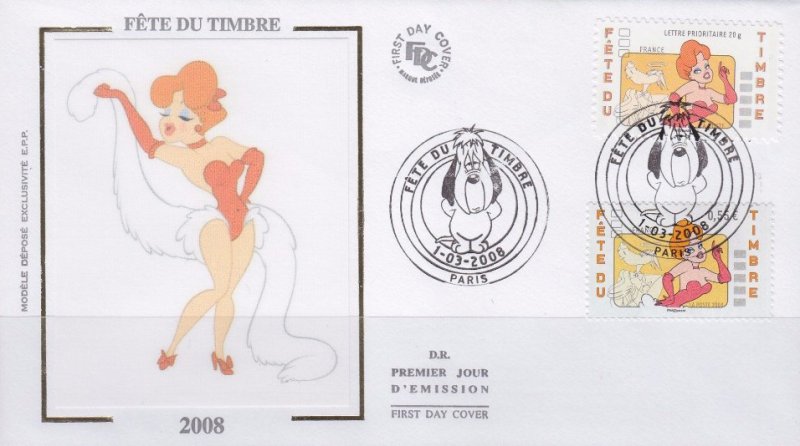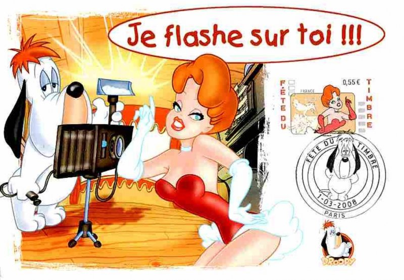 | Description | Fête du timbre 2008. Personnages de Tex Avery (1907-1980) : La girl et le loup |