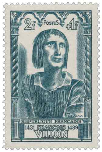 | Commentaire | Émis en France en 1946, ce timbre gommé commémoratif est consacré à François Villon, poète majeur de la fin du Moyen Âge, dont l’œuvre marque une rupture profonde dans la littérature française par son ton personnel, son réalisme cru et son usage virtuose de la langue. Dessiné et gravé en taille-douce par Albert Decaris, le timbre reprend un portrait présumé du poète, figure emblématique du Paris du XVe siècle, étroitement associée au milieu universitaire et populaire du Quartier Latin. Mis en vente générale le 28 octobre 1946, il appartient à une émission à surtaxe au profit de l’Entraide française, combinant hommage culturel et vocation sociale, caractéristique de nombreuses émissions de l’après-guerre. Destiné à l’affranchissement des imprimés pour l’étranger au deuxième échelon de poids, ce timbre s’inscrit dans la série des célébrités françaises illustrant le patrimoine intellectuel national, Villon incarnant à la fois le poète savant et marginal. Une donnée historiquement établie rappelle que ses œuvres majeures, Le Lais et Le Testament, furent imprimées dès la fin du XVe siècle et connurent un succès immédiat, contribuant à forger la « légende Villon », toujours vivante dans la mémoire littéraire française, notamment à Paris. |