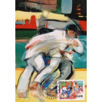 | Commentaire | BF 122 La mise en vente anticipée a lieu du 16 au 22 juin au Salon du timbre, à Paris, avec pour cachet premier jour le nom de la ville et les anneaux olympiques, mis en page par Jean-Paul Cousin |