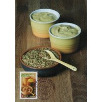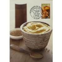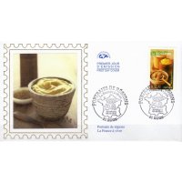 | Commentaire | 4 verticaux 26 x 40 mm 6 horizontaux 40 x 26 mm. La manifestation premier jour se déroule les 6 et 7 septembre dans plusieurs villes liées aux éléments représentés par l'émission : Aix-en-Provence, Céret, Cilaos, Dijon, Dole, Épinal, Laruns, Le Puy-en-Velay, Paris, Sabres et Thônes. Valérie Besser dessine le cachet premier jour : une carte de France dans laquelle se trouvent trois châtaignes, un pot de moutarde et des calissons. |