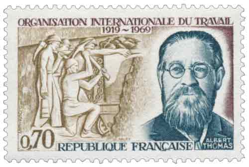 | Commentaire | Émis en 1969 à l’occasion du cinquantième anniversaire de l’Organisation internationale du travail, ce timbre commémoratif s’inscrit dans une série d’émissions françaises consacrées aux grandes institutions internationales nées de l’après-Première Guerre mondiale et met en lumière le rôle fondateur de l’OIT dans la promotion d’une paix durable fondée sur la justice sociale, principe affirmé dès 1919 dans le traité de Versailles ; en associant explicitement le jubilé de l’Organisation à la figure d’Albert Thomas, premier directeur du Bureau international du Travail, la figurine rappelle l’ancrage français de cette institution installée à Genève et souligne la dimension tripartite, originale à l’époque, de son fonctionnement réunissant gouvernements, employeurs et travailleurs ; dans le contexte de la fin des années 1960, marqué par l’élargissement rapide du nombre d’États membres et par de nouveaux enjeux liés à l’emploi, à la formation et aux droits sociaux, ce timbre traduit la volonté de la politique postale française de donner une visibilité internationale aux grandes réalisations institutionnelles du XXe siècle tout en inscrivant leur action dans une perspective historique et symbolique accessible au grand public. Article rédigé pour WikiTimbres |