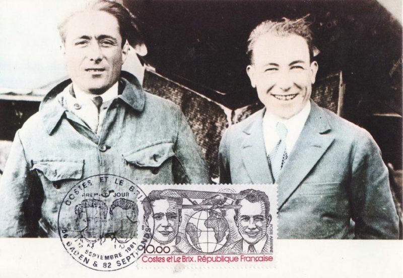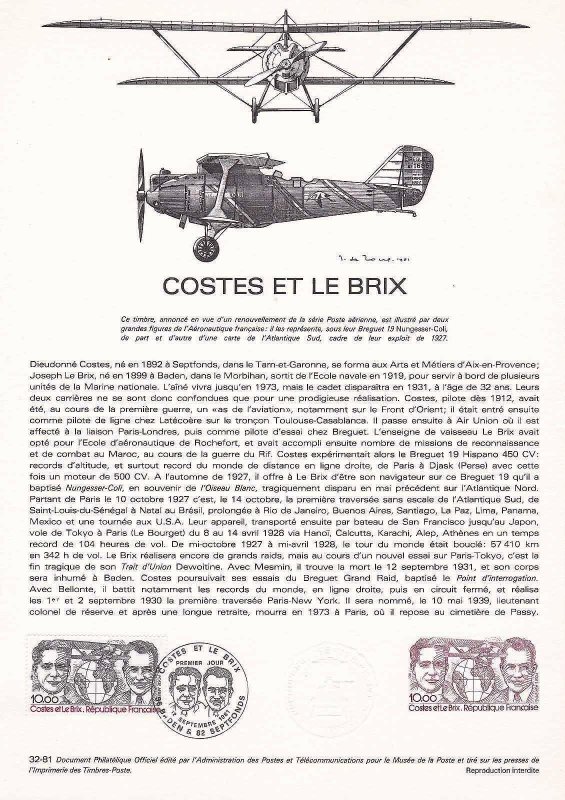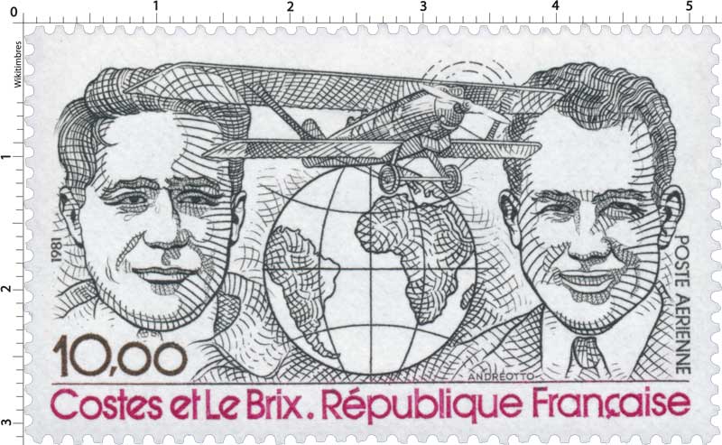 | Commentaire | Hommage aux aviateurs D. Costes (1892-1973) et J. Le Brix (1899-1931).1° traversée de l'Atlantique Sud sans escale |