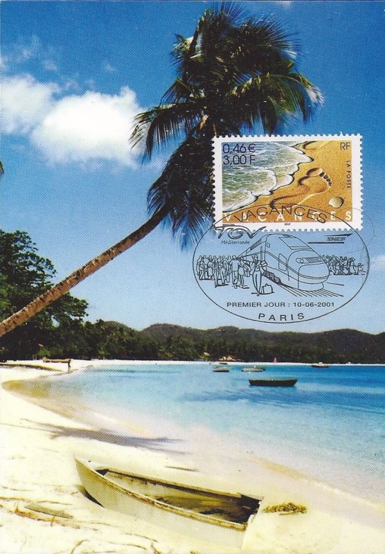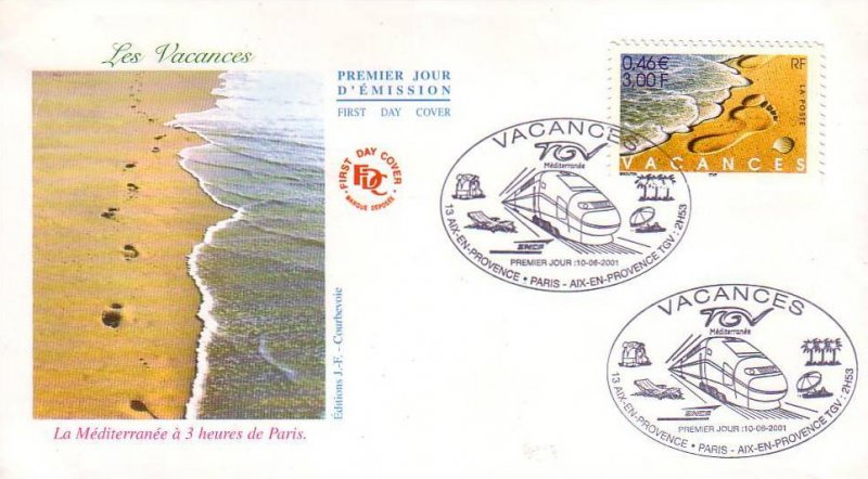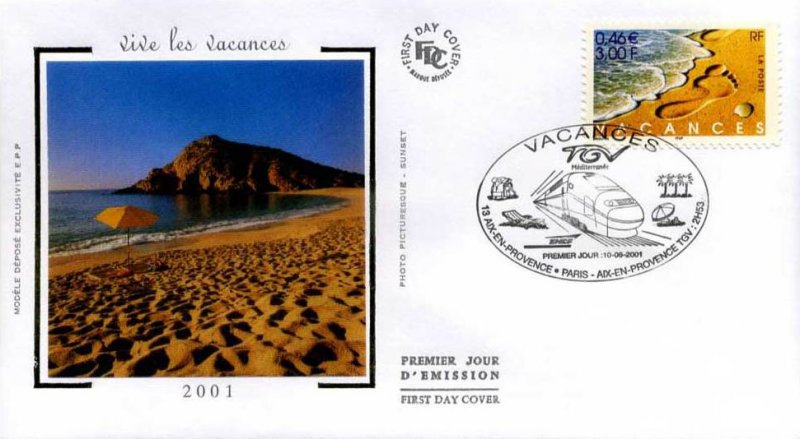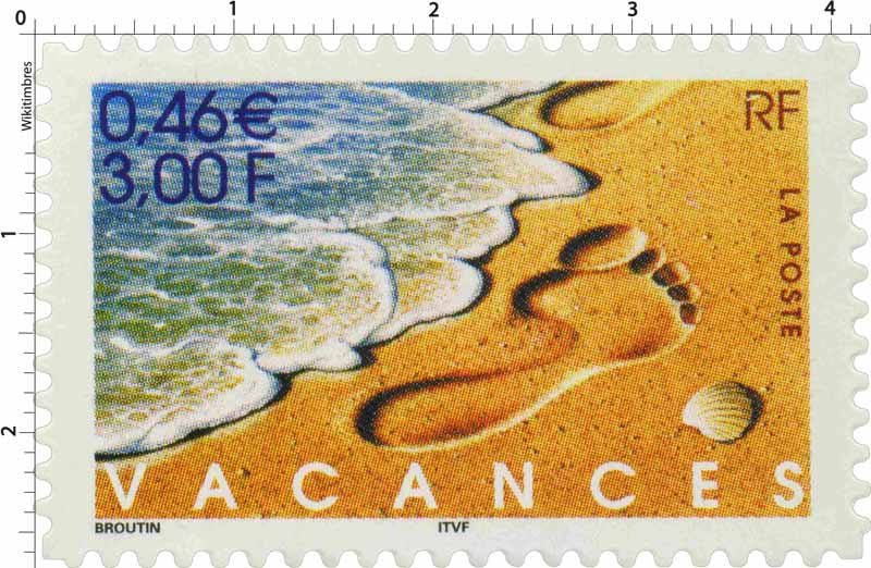 | Commentaire | Timbre sans millésime. Description synthétique du visuel du timbre : Le visuel de la couverture est une extension du visuel du timbre : une vague vient mourir sur une plage sur laquelle on perçoit une empreinte de pas. Les mots Bonnes vacances s’inscrivent dans le sable. Existe non surchargé accidentellement de bandes phosphorescentes. Existe également surchargé d'une seule bande phosphorescente. |