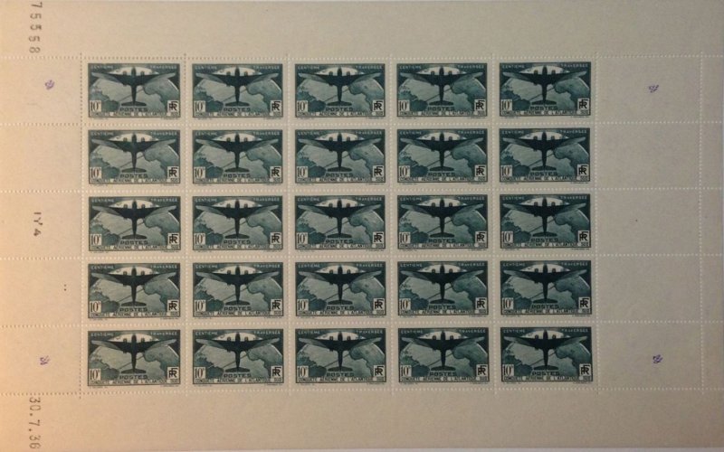 | Commentaire | Visuel : avion de la ligne aérienne aéropostale survolant le globe terrestre, avec l'itinéraire de la ligne Toulouse Saint-Louis du Sénégal – Natal au Brésil – Buenos-Aires (un hommage à Jean Mermoz et son équipage) Histoire : Jean MERMOZ , réalise le 12 mai 1930, pour la première fois, la liaison Toulouse – Saint-Louis du Sénégal - Natal au Brésil, avec 130 kg de courrier. Première traversée aérienne sans escale de l'Atlantique Sud entre le Sénégal et le Brésil, à bord de l'hydravion Latécoère 28 "Comte de la Vaulx" de l'Aéropostale (en 21 h). Le 16 janv. 1933, il relie Saint-Louis à Natal en 14h24, à bord du trimoteur Couzinet C70 "Arc en Ciel" de René Couzinet Ce timbre commémoratif de 1936 célèbre un jalon majeur de l’aviation postale française : la centième traversée aérienne de l’Atlantique Sud, accomplie dans le cadre de la ligne de l’Aéropostale. Il s’inscrit dans la série des grandes émissions françaises dédiées à la conquête aérienne, à une époque où l’aviation incarne à la fois la modernité technologique, le prestige national et la maîtrise des grandes distances intercontinentales. L’émission rend directement hommage à Jean Mermoz, figure emblématique de l’Aéropostale. Le timbre rappelle notamment la première traversée sans escale de l’Atlantique Sud réalisée le 12 mai 1930 entre Saint-Louis du Sénégal et Natal (Brésil) en hydravion, ainsi que le vol Paris–Buenos Aires effectué en janvier 1933 à bord du Couzinet 70 “Arc-en-Ciel”. En arrière-plan du dessin apparaît l’itinéraire complet de la ligne Latécoère–Aéropostale, reliant Toulouse à l’Amérique du Sud, avec la portion maritime atlantique clairement mise en évidence. D’un point de vue philatélique, cette valeur se distingue par son fort pouvoir d’affranchissement, correspondant au tarif de la lettre par avion pour l’Amérique du Sud, ce qui explique son tirage limité par rapport aux timbres courants de la période. Elle fut principalement utilisée sur du courrier aérien international, souvent conservé aujourd’hui sous forme de plis spectaculaires, très recherchés des collectionneurs spécialisés en aviation postale et en histoire de l’Aéropostale. L’iconographie, dense et symbolique, associe carte, tracé aérien et évocation directe des exploits de Mermoz, traduisant parfaitement l’esprit de conquête et de maîtrise des routes aériennes françaises dans l’entre-deux-guerres. Cette émission marque l’aboutissement d’une aventure humaine et technique commencée au début des années 1920 et demeure l’un des timbres majeurs de la philatélie aérienne française.