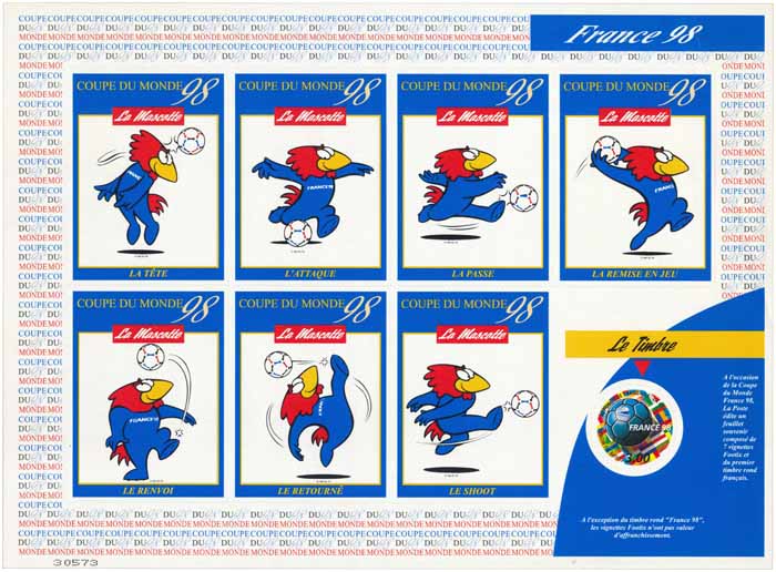 | Description | France 98. Coupe du Monde de Football , 7 vignettes adhésives + 1 TP |