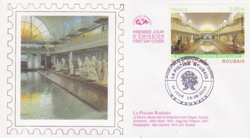 Le Musée d’Art et d’Industrie de Roubaix, aussi appelé La Piscine, est implanté depuis fin 2001 sur le site de l’ancienne piscine municipale, exceptionnel bâtiment art déco. Construite dans les années trente par l’architecte Albert Baert, elle fut reconvertie en musée par l’architecte Jean-Paul Philippon (auquel on doit, entre autres, la reconversion en musée de l’ancienne gare d’Orsay à Paris.