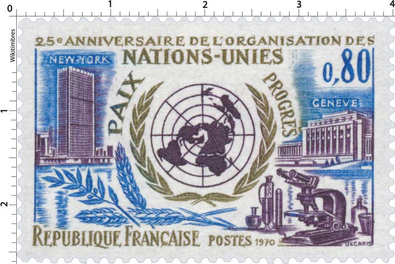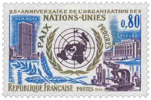 | Description | 25e anniversaire de l'ONU - Paix Progrès |