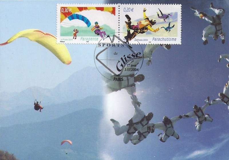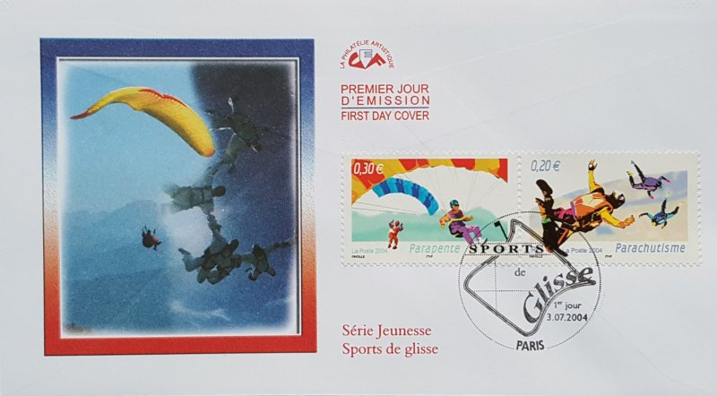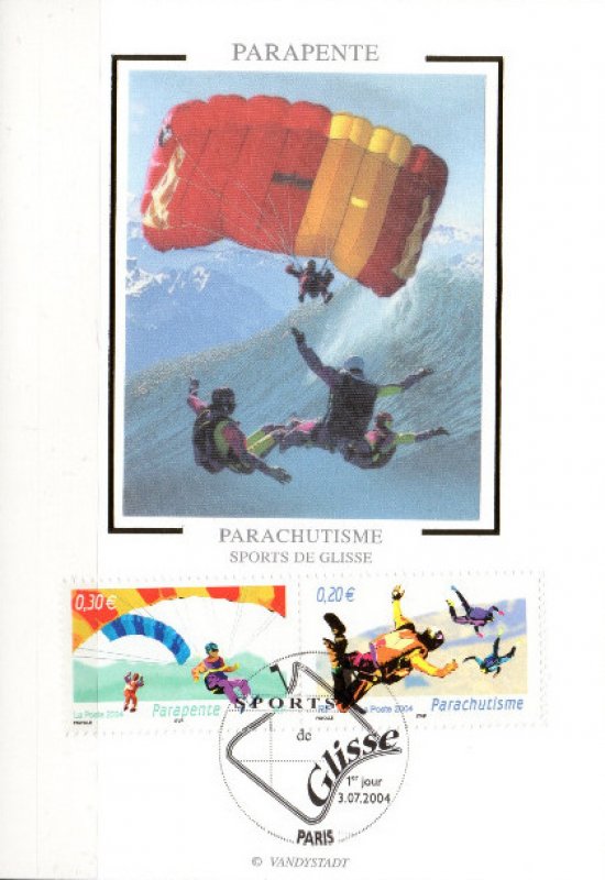 | Commentaire | SPORTS DE GLISSE Dans la continuité des blocs précédemment émis Armada du Siècle, Voitures anciennes, les légendes du rail, Cylindrées & Carénages et Utilitaires & Grandes Échelles, le bloc Collection Jeunesse 2004 met l’accent sur différents sports de glisse sur neige, mer, terre, et aériens soit : Snowboard, Luge, Planche à voile, Jetski, Surf, Bicross, Roller, Skateboard, Parachutisme et Parapente. Émis uniquement en feuillet |
