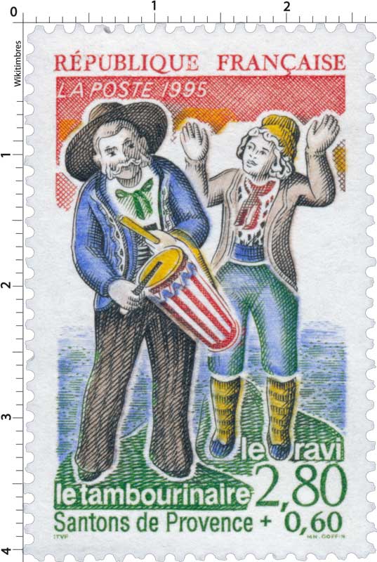 Timbre : 1995 Santons de Provence le ravi le tambourinaire