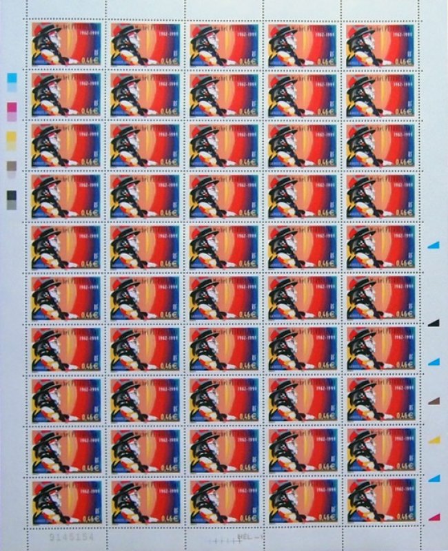 | Commentaire | Le même timbre issu du bloc n'est pas surchargé de bandes phosphorescentes. |