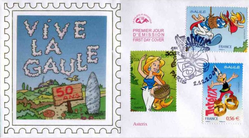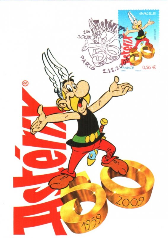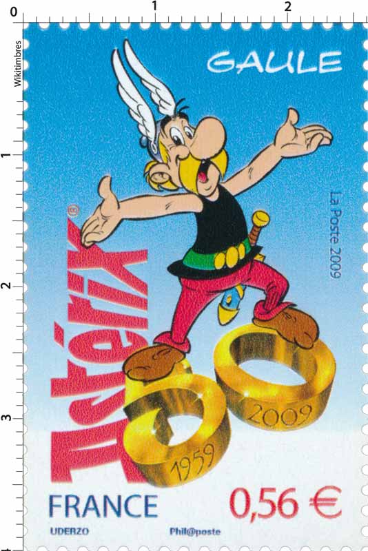 | Description | Les 50 ans d'Astérix : Astérix, créé par le scénariste René Goscinny, né à Paris, et le dessinateur Albert Uderzo, né à Fismes (Marne) |