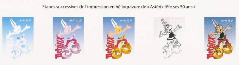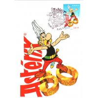 | Commentaire | Le seul timbre du bloc qui sera émis en feuille met en scène Astérix, une création inédite d’Albert Uderzo, et le logo des 50 ans. |