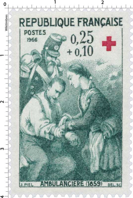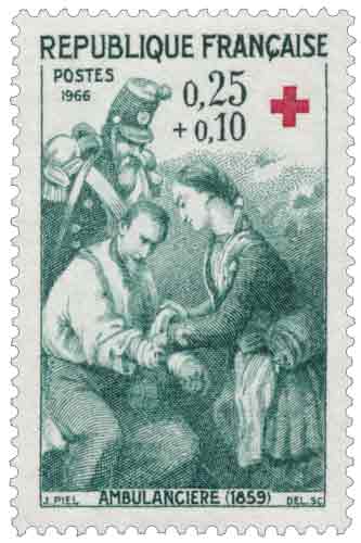 | Commentaire | Ce timbre est grevé d'une surtaxe au profit de la Croix Rouge française Le 24 juin 1859, autour de Solferino, c’est l’enfer. Deux armées s’écharpent toute la journée, et à la tombée de la nuit, ce ne sont plus des soldats qu’on ramasse, mais des lambeaux d’humanité. Le sang, la boue, les hurlements… et, au milieu de tout ça, quelques femmes. Des ambulancières. Pas formées, pas protégées, à peine équipées — juste là, à panser l’horreur avec les moyens du bord : un peu d’eau, un mot doux, un bout de tissu. Ces femmes, on ne les connaît pas. Elles n’ont pas de noms gravés dans les manuels. Pourtant, sans elles, combien seraient morts seuls ? Ce sont elles qui ont inspiré Henri Dunant, témoin sidéré de ce carnage. Son fameux « Souvenir de Solferino », ce cri du cœur qui déclenchera la création de la Croix-Rouge, c’est un peu aussi le leur. Ce sont elles, à leur manière, qui ont donné naissance à l’idée même de soins humanitaires. Et tiens, détail que j’adore : à l’époque, l’ambulancière ressemble plus à une cantinière qu’à une soignante. Pourtant, elle incarne déjà quelque chose de plus grand — une forme brute, presque instinctive, de compassion. C’est elle qu’on retrouve aujourd’hui, bien des années plus tard, dans chaque soignant(e) engagé(e), chaque volontaire sur une zone de conflit, chaque personne qui s’agenouille à côté d’un corps blessé, simplement pour dire : je suis là. Alors non, elle n’avait pas de diplôme. Mais elle avait le geste. Et c’est peut-être ce geste qui a tout changé. WikiTimbres |