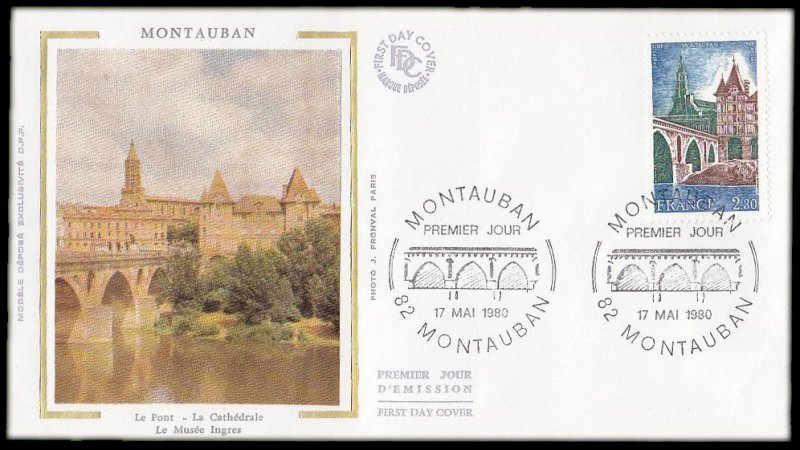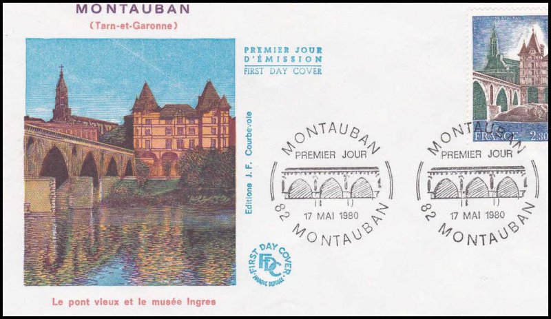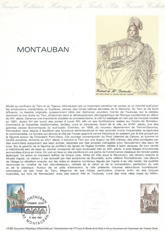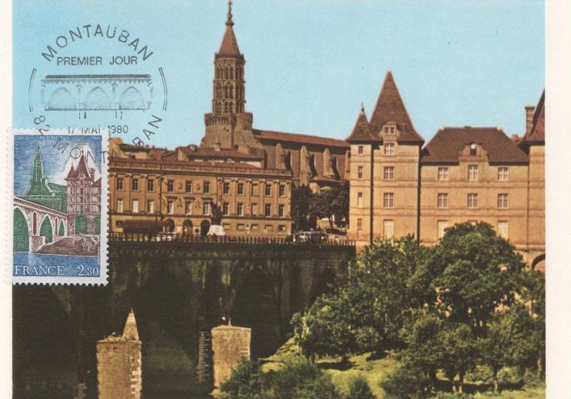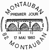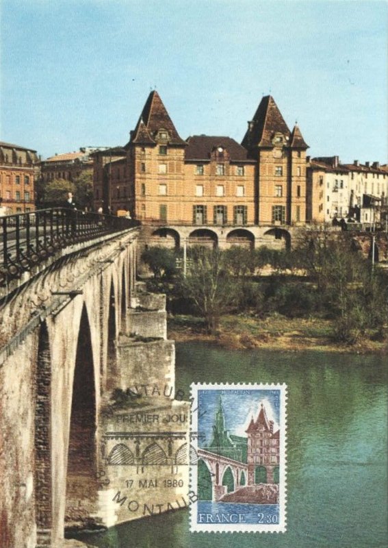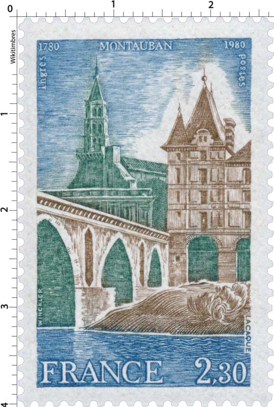 | Description | Montauban. Représentation du Pont vieux et du musée Ingres. En fond, le clocher octogonal de l'église Saint-Jacques |