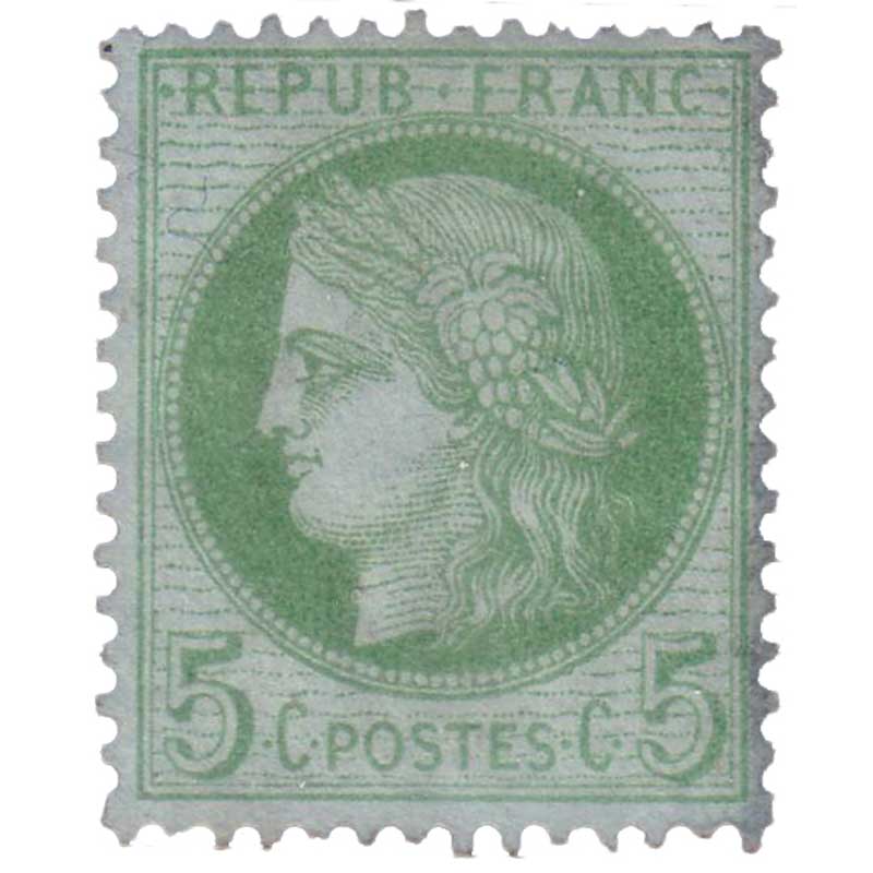 Comme les autres timbres de cette période, le 5c est réalisé à partir des galvanos Cérès conservés par Anatole Hulot, une solution simple et efficace pour relancer la production dans un contexte administratif encore fragile. Sa mise en circulation simultanée avec le 4 centimes souligne la volonté de restructurer entièrement les faibles valeurs nécessaires aux affranchissements du quotidien.
