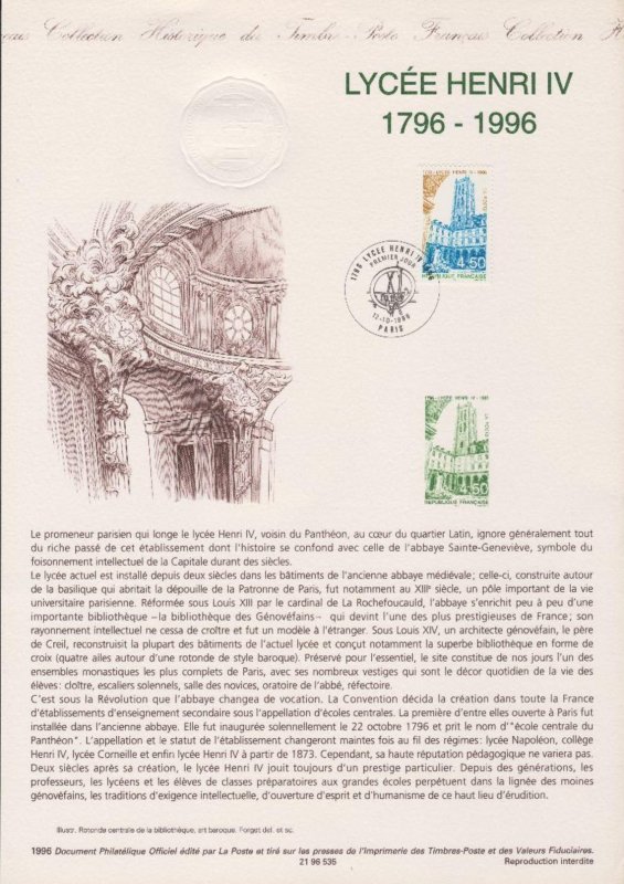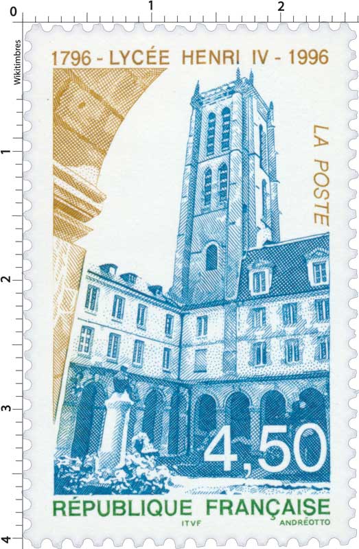 | Commentaire | Timbre erroné, erreur : il s’agit d’un anachronisme, le prestigieux lycée Henri IV ne devint lycée qu’en 1804 |