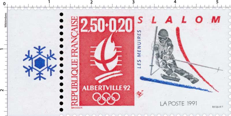 | Description | Albertville 92. Jeux olympiques d'hiver, slalom. Types des T.-P. de 1990 et 1991, avec valeur faciale différente |