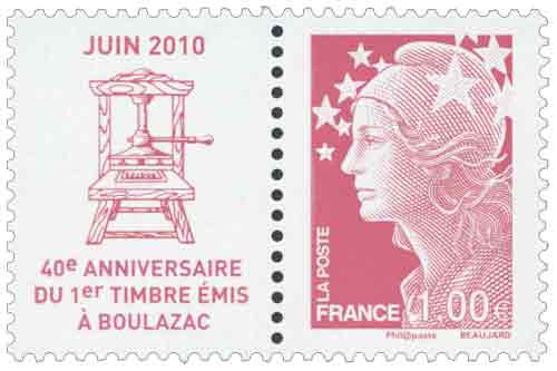 | Description | Marianne de Beaujard, 40e anniversaire du premier timbre émis à Boulazac (Dordogne) |