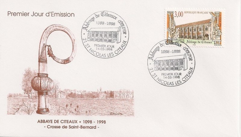 | Description | 900e anniversaire (1098-1998) de la fondation de l'abbaye de Cîteaux (Côte-d'Or), origine de la création de l'ordre cistercien |