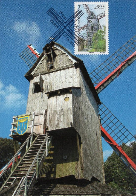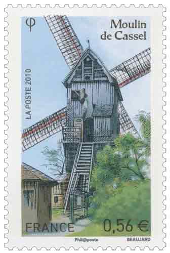 Visuel : ce moulin a remplacé celui d'origine (XVIe siècle) disparu dans un incendie en 1911, situé dans l'enceinte du château, qui appartiendra au Domaine royal lors du retour de la Flandre à la France. - moulin à farine, à huile de colza et de lin ou à écorces de chêne.