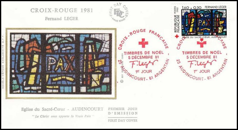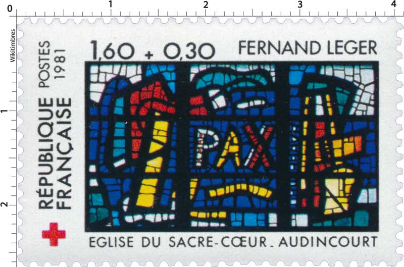| Description | Au profit de la Croix-Rouge française. Église du Sacré-Cœur d'Audincourt (Doubs). Vitraux de Fernand Léger (1881-1955), né à Argentan |