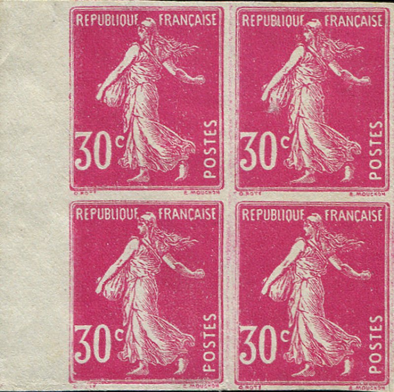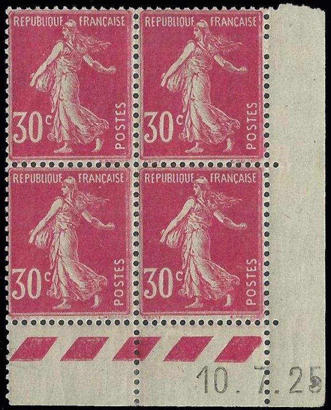 | Commentaire | Semeuse camée. Type I Voir la vidéo "Histoires de timbres" En savoir plus sur Wikipédia : semeuse camée Mis en vente le 6 janvier 1925 et retiré en décembre 1925, ce timbre de 30 centimes appartient à la série des Semeuses fond plein à inscriptions grasses, une variante typographique identifiable par l’épaississement des légendes. Gravé par Louis-Eugène Mouchon d’après le dessin de Louis-Oscar Roty, il est imprimé en typographie, dentelé 14 × 13½, et tiré en feuilles de 150 timbres. La couleur rose s’inscrit dans les usages tarifaires du courrier intérieur au milieu des années 1920. Cette émission courte, présentée sous la référence Maury 191 I, constitue aujourd’hui une valeur recherchée dans la thématique des Semeuses. |