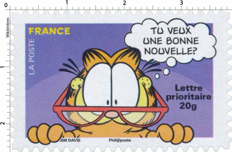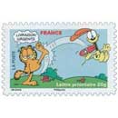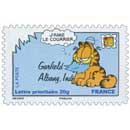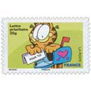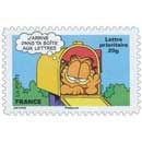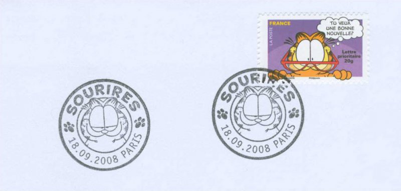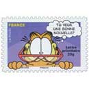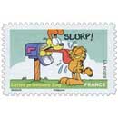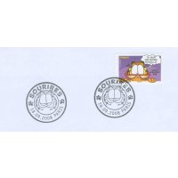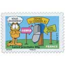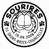 | Commentaire | La mise en vente anticipée a lieu le 18 septembre à Saint-Brice-Courcelles avec un cachet illustré du chat Garfield de face et souriant, sans mention « premier jour ». Timbre sans millésime |