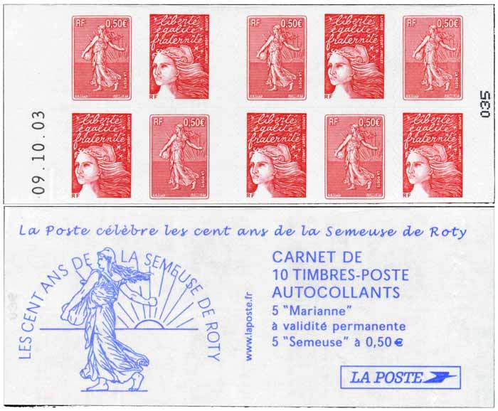 | Commentaire | Composé de 5 TVP et 5 Semeuse de Roty, carnet à plat de guichet voir la vidéo "Histoires de timbres" |