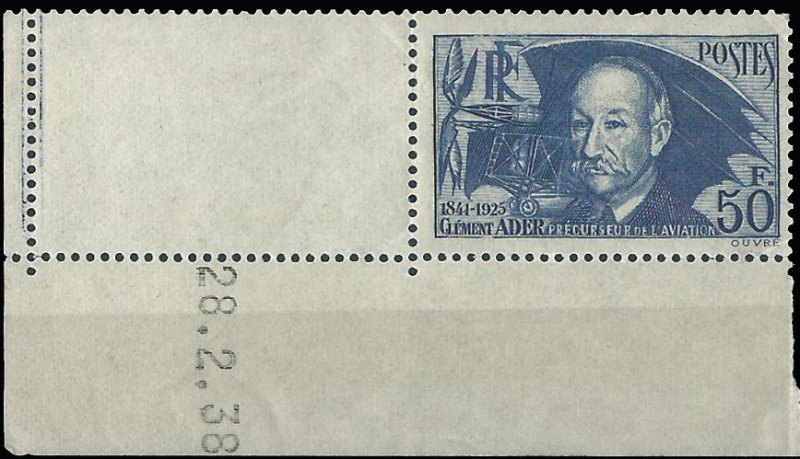 | Commentaire | Clément Ader (1841-1925). Retiré le: 05/10/1934 et retrait définitif le 25 novembre 1940 Voir la vidéo "Histoires de timbres" |