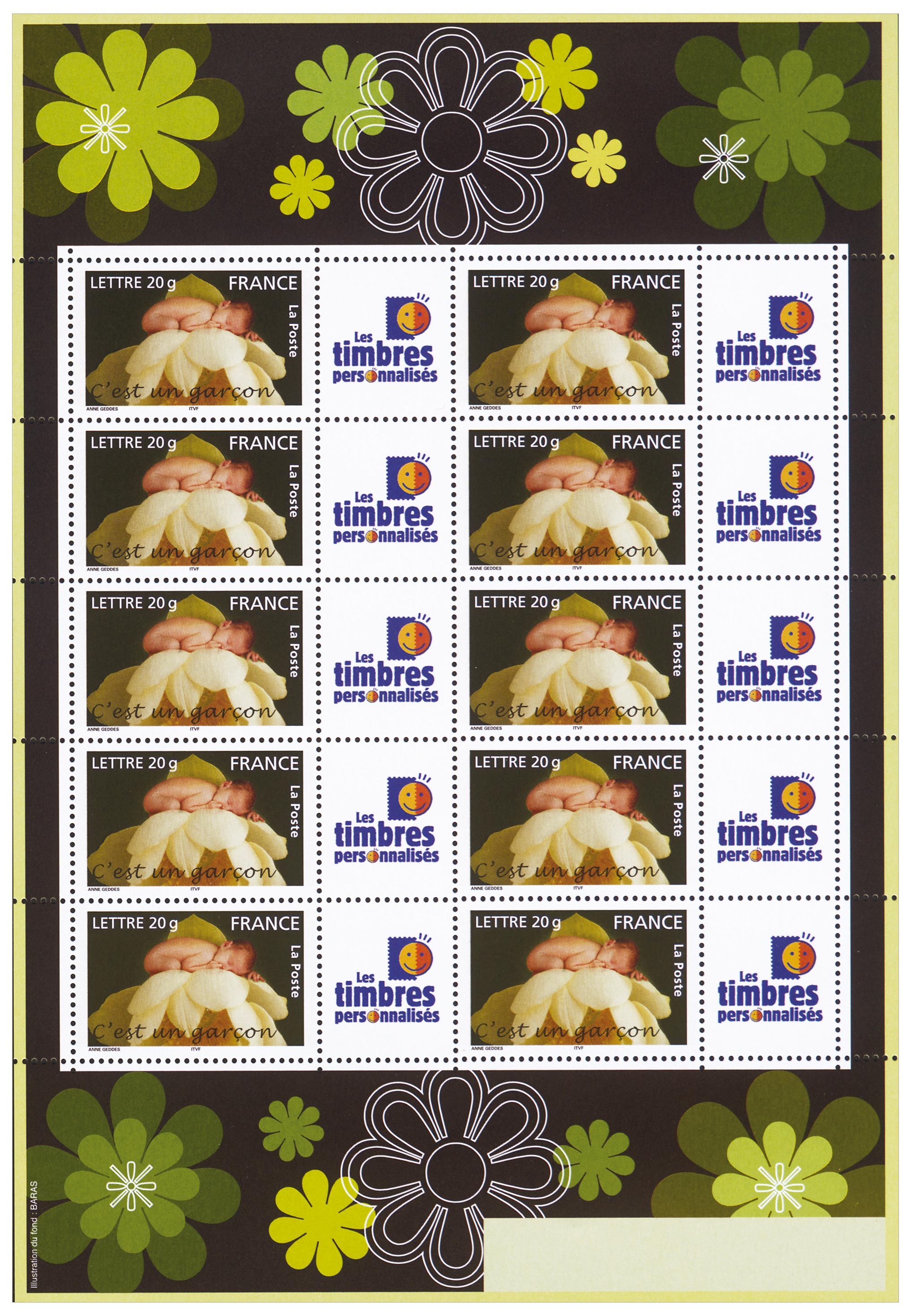 | Description | Timbre pour naissances. C'est un garçon. Type du T.-P. de même date. Avec vignette Les timbres personnalisés ou personnalisable |