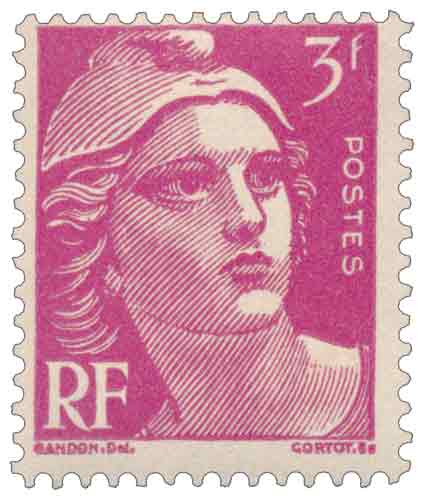 | Commentaire | Ce timbre gommé français émis en 1948 appartient à la série d’usage courant dite de la Marianne de Gandon, figure allégorique de la République choisie à la Libération pour incarner le renouveau institutionnel et civique de la France, cette valeur de 3 francs rose-lilas répondant à des besoins postaux précis liés aux tarifs modestes de l’après-guerre ; émis en mai 1948, il s’insère dans la continuité de la série lancée en 1944-1945 et progressivement complétée afin de couvrir l’ensemble des échelons tarifaires, son usage étant notamment destiné à l’affranchissement de cartes postales très courtes, de cartes de visite et à certaines taxes postales, ce qui explique un tirage exceptionnellement élevé ; le dessin de Pierre Gandon, gravé par Henri Cortot et imprimé en typographie rotative, se caractérise par une composition simple et lisible, adaptée à une production de masse, la teinte rose-lilas permettant une identification rapide de la valeur faciale au guichet comme au tri ; une particularité reconnue de cette émission est la coexistence, à deux ans d’intervalle, de deux Marianne de Gandon à 3 francs, celle de 1946 puis celle de 1948, illustrant l’ajustement continu des couleurs et des impressions en fonction des contraintes tarifaires et industrielles de la période, ce qui confère à ce timbre une place centrale dans l’histoire philatélique française des usages courants de l’après-guerre. |