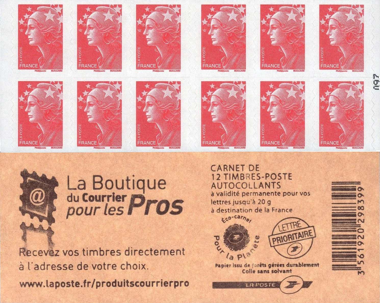 | Description | Carnet Marianne et l'Europe. Couverture Boutique Courrier Pros 12 TVP |