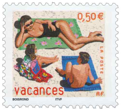 | Commentaire | Existe également en autoadhésif. Description synthétique du visuel du timbre : Les semi-permanents vacances constituent un timbre à succès faisant l’objet d’une nouvelle émission tous les ans. Une scène de vacances réalisée par François Boisrond et un format de timbre original permettent |