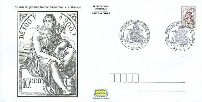 | Description | Pour commémorer les 150 ans du 1er timbre fiscal mobile réalisé par Guillaume Alphonse Harang, dit Cabasson |