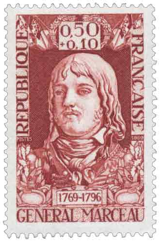 | Commentaire | Le timbre français émis en 1969 à l’effigie du général Marceau s’inscrit dans la série des Célébrités du XVIIIᵉ au XXᵉ siècle et commémore une figure emblématique de la Révolution française, symbole d’un engagement militaire précoce et d’un idéal républicain fondé sur le courage et le désintéressement ; cette émission caritative, assortie d’une surtaxe au profit de la Croix-Rouge française, met en valeur François Séverin Marceau, né à Chartres et devenu à un âge exceptionnellement jeune général en chef, dont le parcours incarne l’élan patriotique des volontaires de 1792 et la transformation rapide des cadres militaires durant la période révolutionnaire, tandis que le choix d’une vente anticipée à Chartres souligne l’ancrage local du sujet et la volonté de la Poste de relier mémoire nationale et histoire territoriale ; le timbre rappelle également le souvenir durable laissé par ce chef militaire mort à vingt-sept ans, honoré aussi bien par ses contemporains que par la postérité comme une figure à la fois guerrière et humaine. Article rédigé pour WikiTimbres |