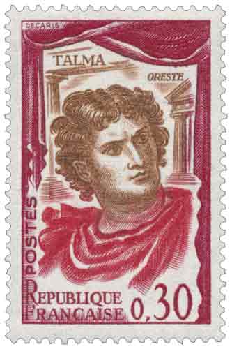 | Commentaire | Émis par la France en 1961 dans la série des Acteurs célèbres et leurs rôles, le timbre-poste gommé consacré à François-Joseph Talma représente le tragédien dans le rôle d’Oreste et s’inscrit dans une démarche patrimoniale visant à rappeler l’importance du théâtre classique dans l’histoire culturelle nationale, avec une mise en vente anticipée à Paris le 10 juin 1961 puis une diffusion générale à compter du 12 juin, et un usage postal correspondant à l’affranchissement de la carte postale pour l’étranger, tandis que la gravure en taille-douce, dessinée et gravée par Albert Decaris, illustre le style expressif et sobre associé aux grandes figures dramatiques, Talma étant reconnu pour avoir profondément renouvelé l’interprétation tragique à la charnière des XVIIIᵉ et XIXᵉ siècles par une recherche de vérité scénique et une réforme du costume inspirée de l’Antiquité, influençant durablement l’esthétique théâtrale et marquant notamment les rôles de Corneille et de Jean Racine, ce timbre occupant ainsi une place cohérente dans la philatélie française de 1961 par son sujet, sa fonction postale clairement définie et sa technique d’impression traditionnelle. |