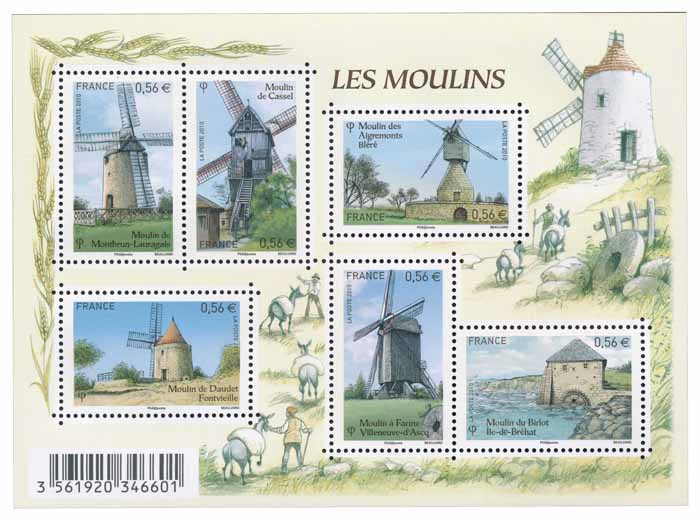 Le bloc présente le Moulin d’Alphonse Daudet, le Moulin de Cassel, le Moulin à Farine de Villeneuve d’Ascq, le Moulin de Montbrun-Lauragais - aussi appelé Moulin de Passelègue -, le Moulin des Aigremonts et le Moulin du Birlot.