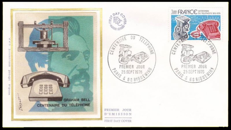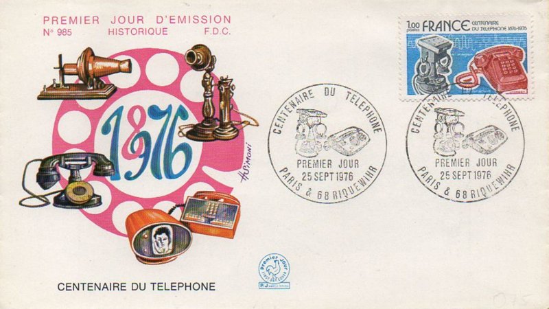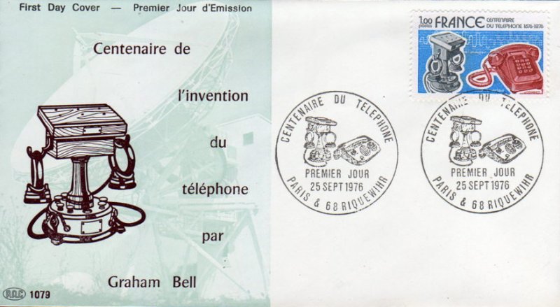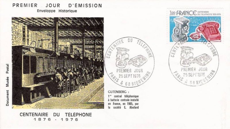 | Description | Centenaire du téléphone (1876-1976). Oblitération 1er jour à Riquewihr (Haut-Rhin) |