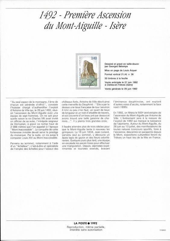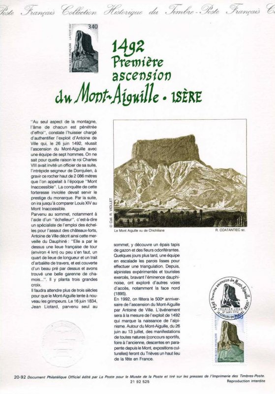 | Description | 500e anniversaire de la 1re ascension du Mont Aiguille (Isère) en 1492 |
