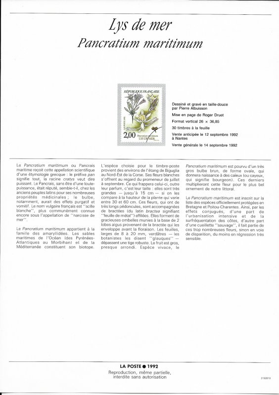 | Description | Lys de mer (Pancratium maritimum), ou lis des sables |