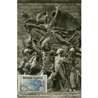 | Commentaire | La marseillaise de Rude - Orphelins de la guerre. Démonétisé le :31/08/1934 Le Départ des Volontaires de 1792 (aussi connu comme La Marseillaise), sculpture par François Rude, sur l' Arc de Triomphe de l'Etoile à Paris. En savoir plus sur Wikipédia : François Rude Émis le 27 décembre 1926, le timbre de bienfaisance « 5 f + 1 f – La Marseillaise à Paris » constitue la valeur la plus élevée de la 3ᵉ émission des Orphelins de la guerre. Dessiné par Louis Dumoulin et gravé par Léon Henri Ruffé, il reprend le même visuel patriotique que le 1 f + 25 c, mais en l’enrichissant d’une gamme de couleurs noir et bleu, donnant au motif une solennité plus marquée. Cette émission caritative, l’une des plus emblématiques de l’entre-deux-guerres, fut destinée à soutenir durablement les œuvres en faveur des enfants ayant perdu leur père pendant la Première Guerre mondiale. Avec sa valeur faciale élevée (5 f + 1 f), ce timbre reflète la participation volontaire de la population à cet effort national. Imprimé en typographie, dentelé 13½ x 14, et présenté en feuilles de 75, il adopte le grand format horizontal de 40 x 24 mm, qui permet un rendu particulièrement détaillé de la scène : la Marseillaise portée par un groupe compact d’hommes et de femmes, symbolisant l’unité républicaine. Sa longue période de vente jusqu’au 31 août 1934 en fait un témoin majeur de la persistance du devoir de mémoire dans les années 1920-1930. Très prisé des collectionneurs spécialisés dans les timbres au profit de, il constitue une pièce centrale pour comprendre l’évolution des émissions caritatives françaises. |