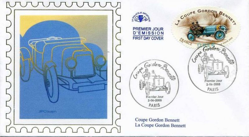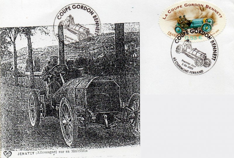 | Description | Coupe Gordon Bennett. Centenaire de la dernière coupe automobile Gordon Bennett, un parcours de 137 kilomètres autour de Clermont-Ferrand, élaboré par les frères Michelin (représentation d'une Richard-Brasier) |