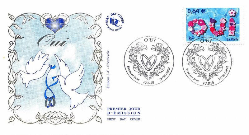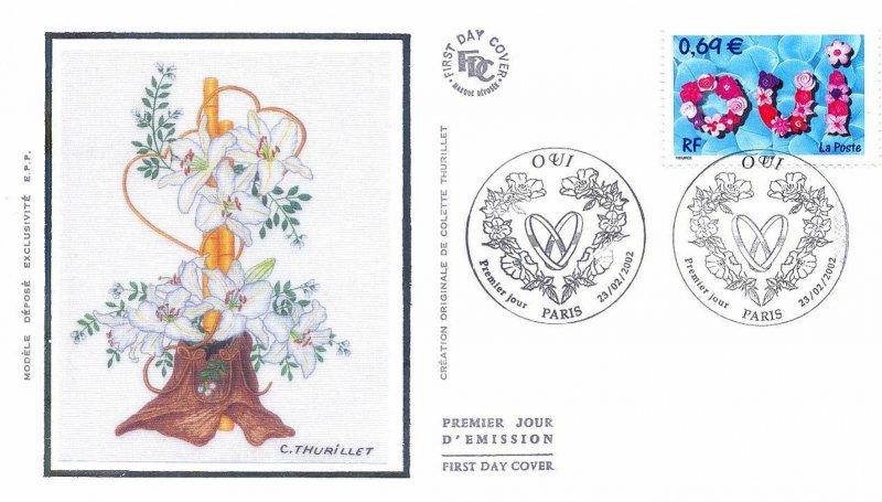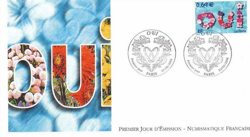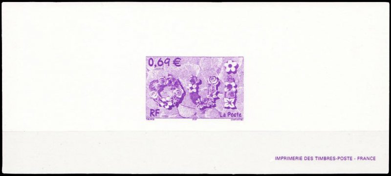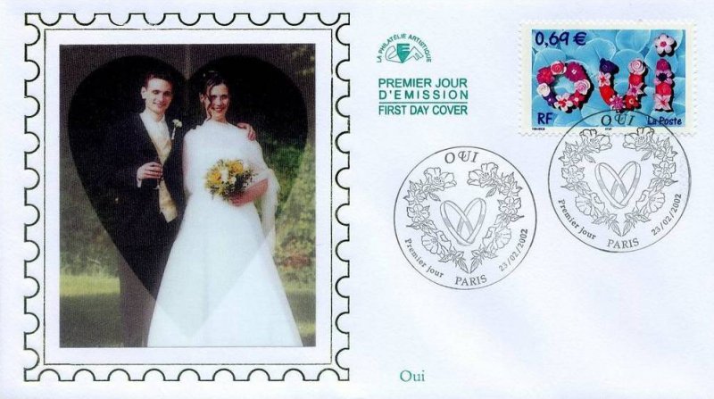 | Commentaire | Description synthétique du visuel du timbre : Des fleurs réalisées en pâte à modeler s’assemblent pour composer le mot « oui » et reposent sur un coussin de pétales d’hortensia réalisé lui aussi en pâte à modeler. Le bouquet de la mariée revisité, dans des couleurs à la fois fraîches et vives. Timbre sans millésime |