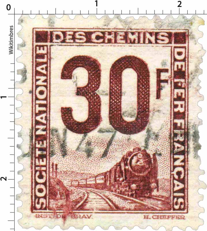Timbre : 1944 SOCIÉTÉ NATIONALE DES CHEMINS DE FER FRANÇAIS Mesures Format d'imp 19 x 22 mm Dents incluses 22 x 26 mm Forme vertical Phosphore Non Impression Taille-douce Complément xxxxx Couleur violet rouge Valeur 30 F Dentelure 12 1/2 Emis en - Quantité - Auteurs Dessinateur Cheffer Graveur Institut de Gravure Mise en page xxxxx Mentions Création de Cheffer Numéros & Dates N° Philatelix PC45 N° Michel - Date d'émission 01/01/1944 Date de retrait - Classements Groupe Colis 1944 - 1952 Catégorie Colis postaux Familles Usage - Régions - Départements - Description Colis postaux Commentaire - Mes timbres & notes personnelles www.wikitimbres.fr