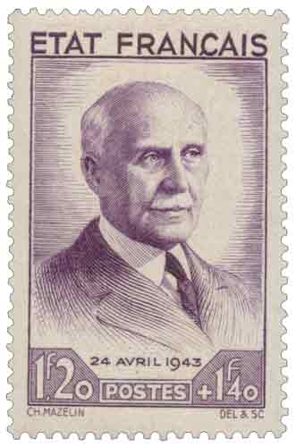 | Commentaire | Philippe Pétain, Maréchal de France (1856-1951) - 24 avril 1943. Démonétisé le :01/11/1944 Ce timbre gommé français de 1943 appartient à la série « Travail Famille Patrie – 24 avril 1943 », émise sous le régime de Vichy pour commémorer le 87ᵉ anniversaire du maréchal Pétain, né le 24 avril 1856. Il représente Pétain en civil, choix iconographique volontairement distinct des portraits militaires antérieurs, destiné à incarner le chef de l’État français dans une posture présentée comme paternelle et civile, en cohérence avec la devise officielle du régime. Dessiné et gravé par Charles Mazelin, le timbre est imprimé en taille-douce rotative polychrome, procédé réservé aux émissions à forte portée symbolique. La valeur faciale de 1,20 franc, correspondant à l’affranchissement de la carte postale intérieure, est assortie d’une surtaxe de 1,40 franc au profit du Secours National, confirmant la fonction idéologique et financière de cette émission. Cette série est la seule de la période à porter explicitement la mention « État Français », ce qui en fait un témoignage philatélique particulièrement caractéristique de l’Occupation. Retiré de la vente avant la fin de l’année 1943, ce timbre sera ensuite démonétisé le 1er novembre 1944, à l’instar des émissions directement associées au régime de Vichy. |