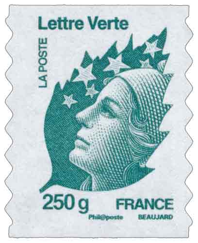| Description | Marianne - Lettre Verte 250 g, autoadhésif |