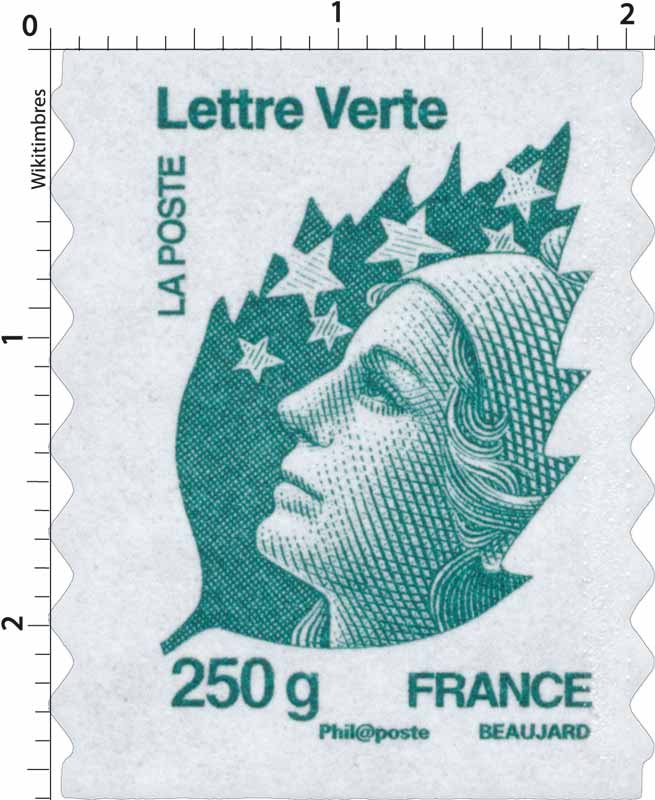 | Description | Marianne - Lettre Verte 250 g, autoadhésif |